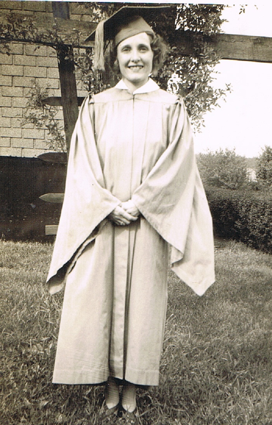 The gown in this photo is not my mothers. It is Aunt Sylvia's when she was graduating from high school. Mom and Doris both wore it for a picture.