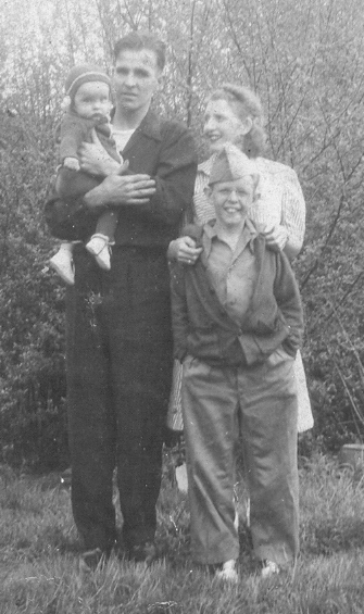 This photo of Dad and Mom, with Dennie and Wes was probably taken on a week-end that my Dad participated in a first-aid competition. Each mine had a team that would compete by demonstrating responses to various emergency situations. I believe around this time he was a 'Fire-Boss'. That job involved safety responsibilities in the mines. The 'meets' would take place at a fairground stadium. I remember attending Indiana and Ebensburg meets. Dad's brown garb was his team's uniform. It is ironic that his fatal accident occurred a short time later.
